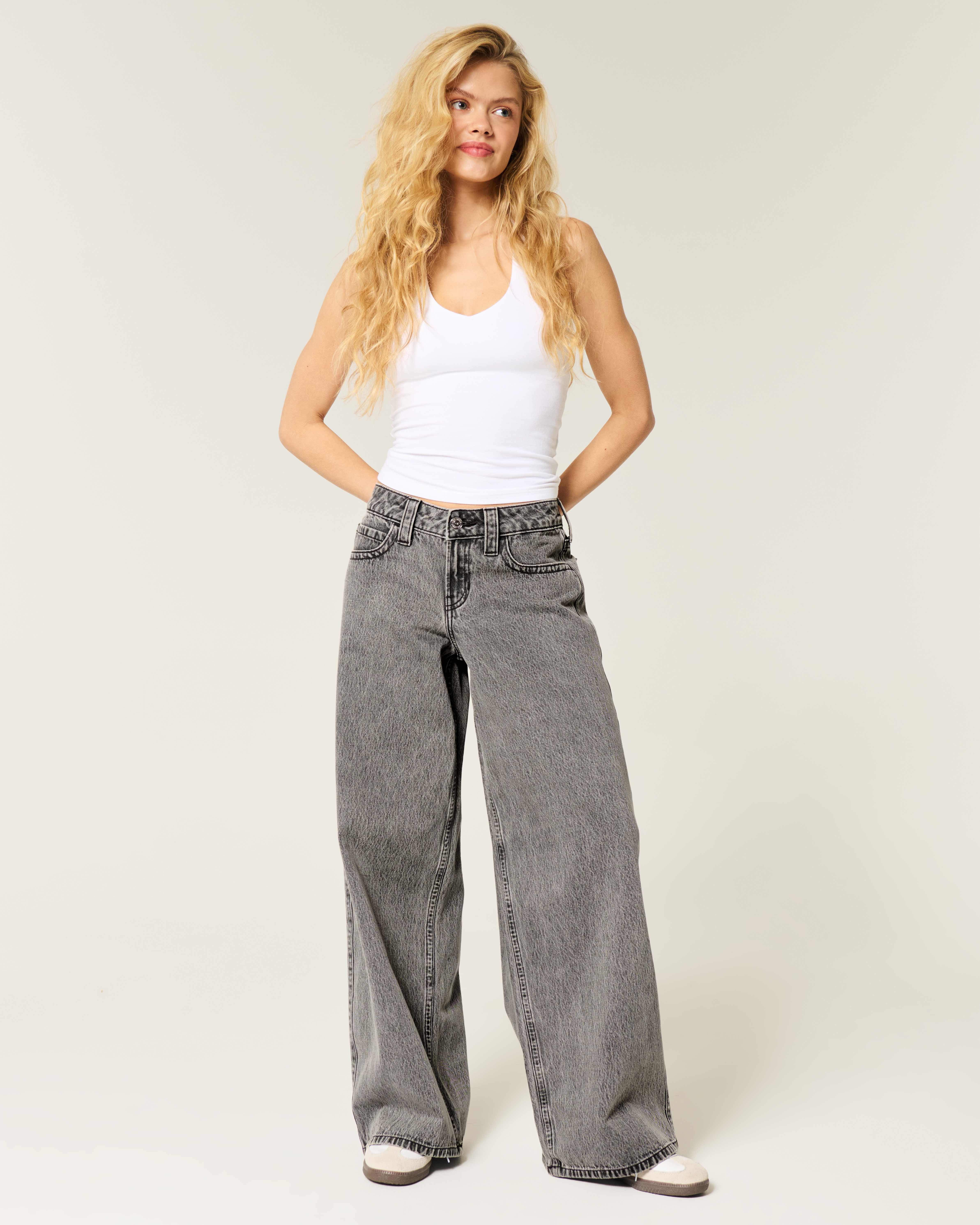 Ultra Low-Rise Medium Wash Baggy Jeans