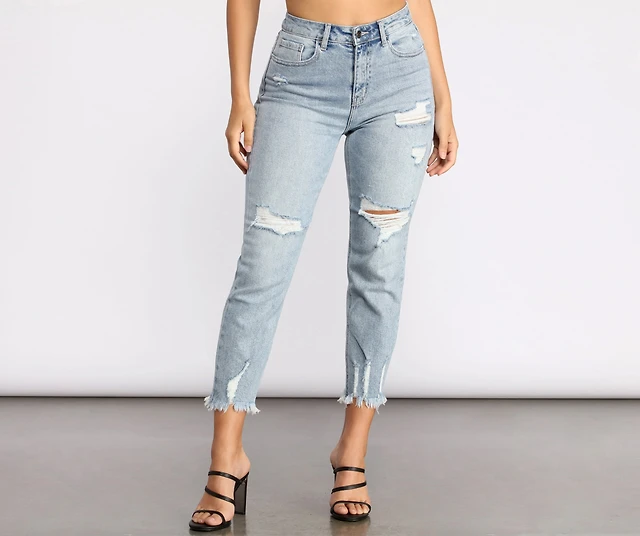 Democracy Petite Skyrise Straight-Leg Step Hem Jeans