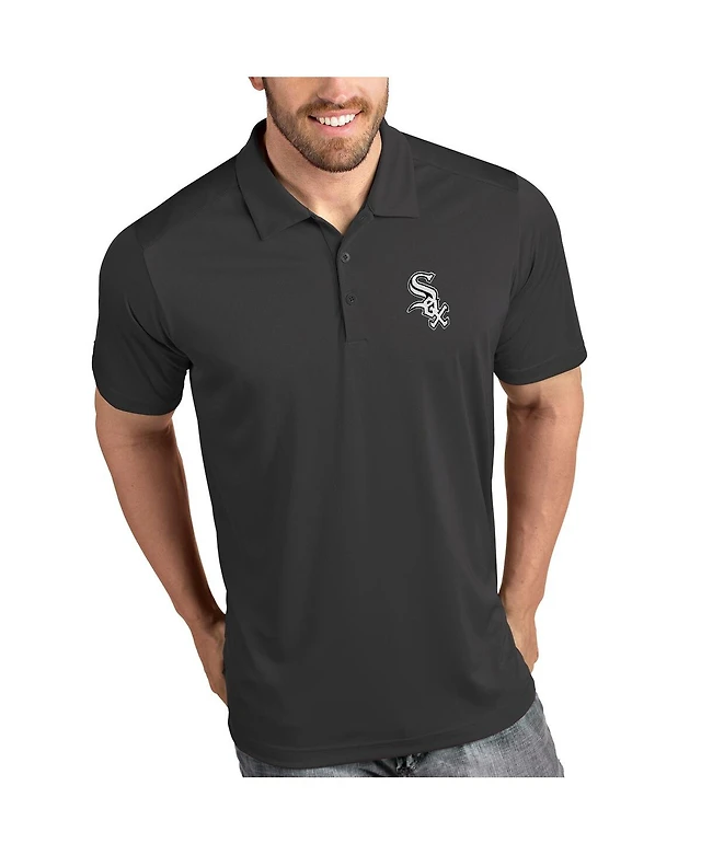 Men's Antigua Heather Gray Chicago Cubs Metallic Affluent Polo