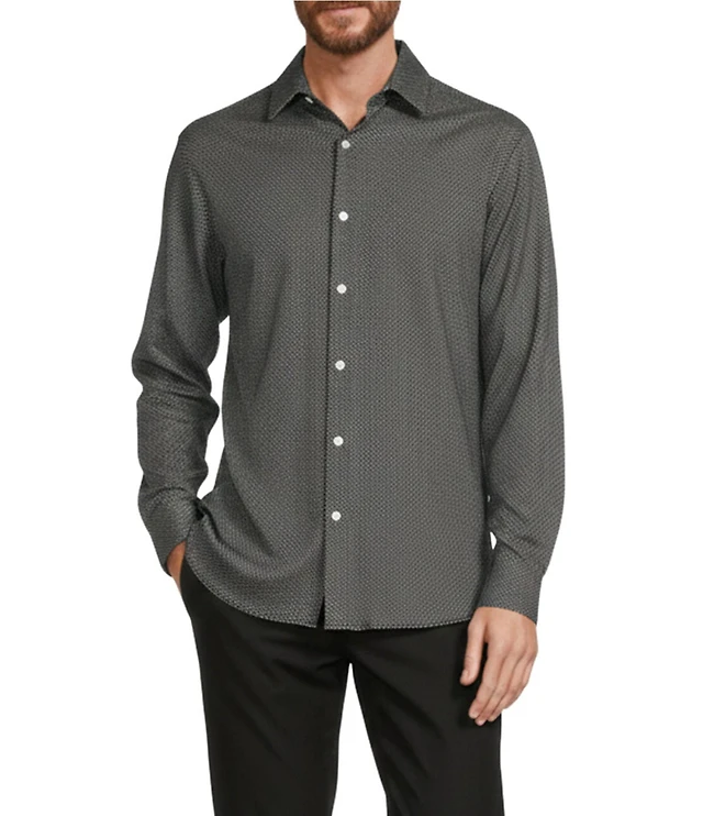 Hart Schaffner Marx State Street Essentials Long Sleeve Geo Print Albini Knit 4Flex Coat Front Shirt