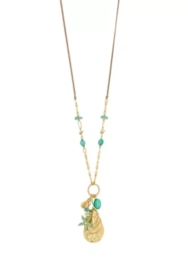 Gold Tone Long Multi Sea Life Charm Pendant Necklace