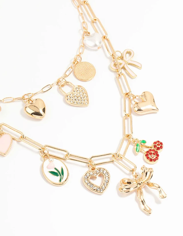Juicy Couture Layered Pink & Goldtone Charm Necklace