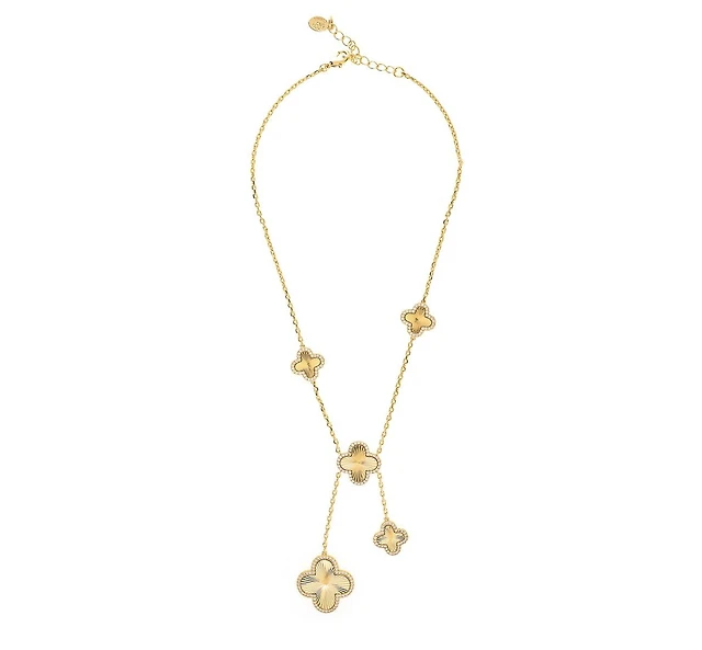 Devata Mother of Pearl Clover Chain Necklace in 14K Gold, 16 in adj to 18 in, approx. 4.3gr