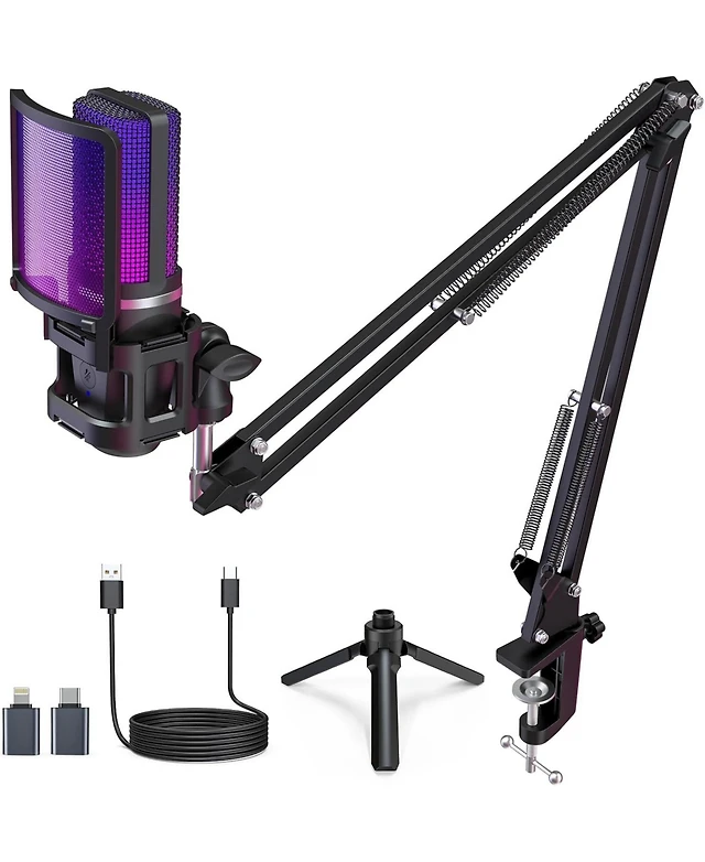 ZealSound Gaming Usb Microphone, Noise-Canceling Condenser Mic with Rgb, Mute, Gain, Monitoring, Boom Arm, Pop Filter for Pc, PS4, PS5, Twitch