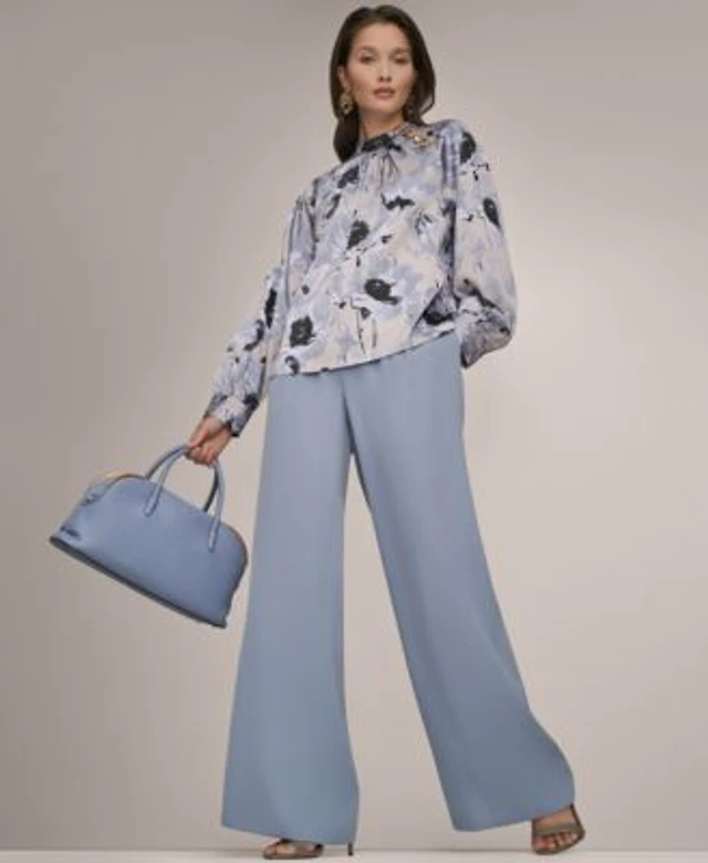 Donna Karan New York Womens Printed Mock Neck Top Wide Leg Pull On Pants
