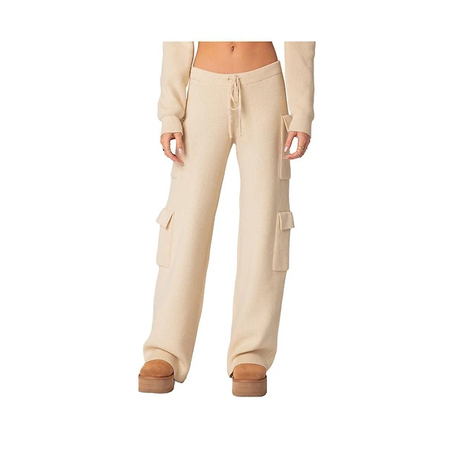 Edikted Womens Ayve Eyelet Waist Straight Leg Pants