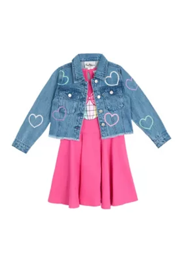 Deux par Girl Stretch Denim Jacket Dark Blue with Glittery Hearts and Unicorn
