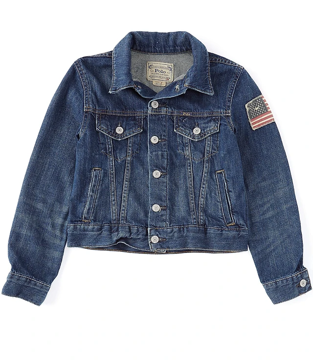 Polo Ralph Lauren Big Boys American Flag Patch Denim Trucker Jacket