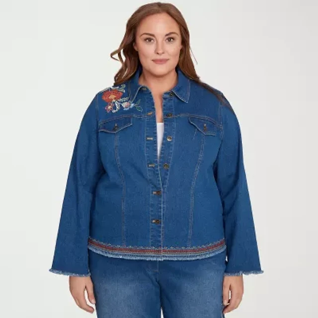 Alfred Dunner El Paso Womens Plus Denim Embroidered Lightweight Jacket