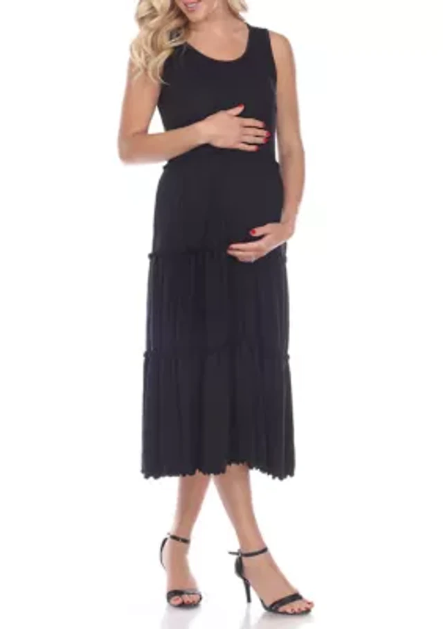 Pinkblush Maternity Black Collared Button Down Tiered Midi Dress