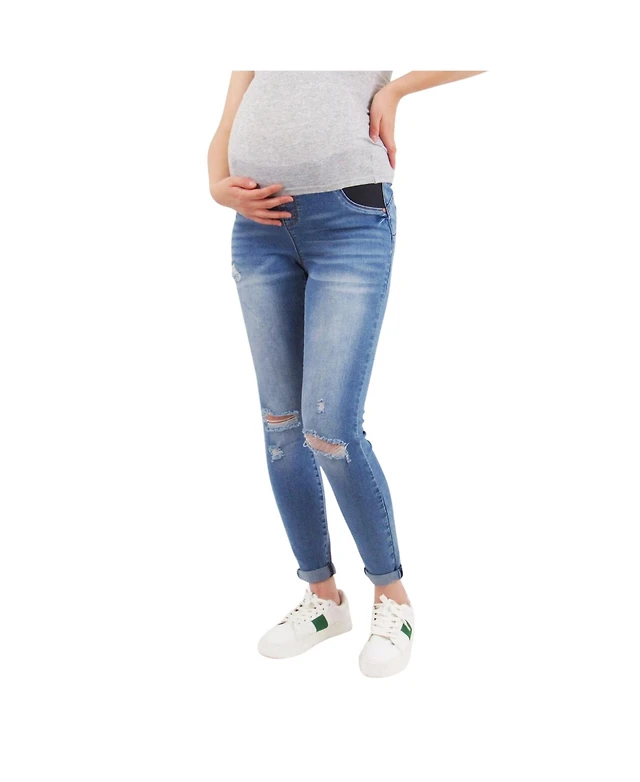 Indigo Poppy Maternity Light Wash Butt Lifter Distressed Jeans With Belly Band