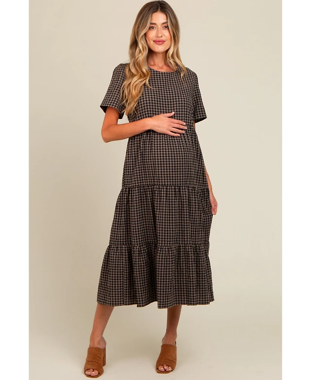Motherhood Maternity Women's Short Sleeve Henley Bodycon Maxi Dress