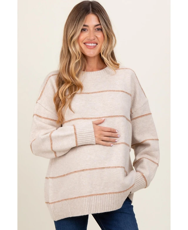 Pinkblush Maternity Brown Cable Knit Sleeve Round Neck Sweater