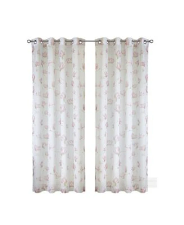 Habitat Magnolia Light Filtering Pink Watercolor Floral Print Grommet Curtain Panel 52 X22 X 95 X22 White Pink
