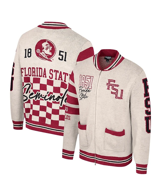 Colosseum Women's Cream Florida State Seminoles Jacquard Full-Zip Sweater