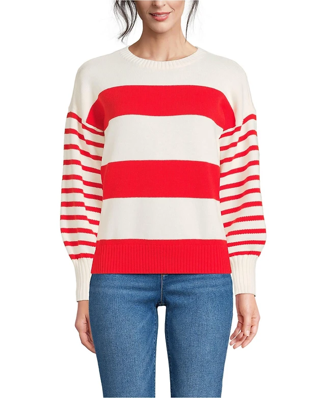Lands' End Women's Cotton Drifter Novelty Jacquard Crew Neck Sweater