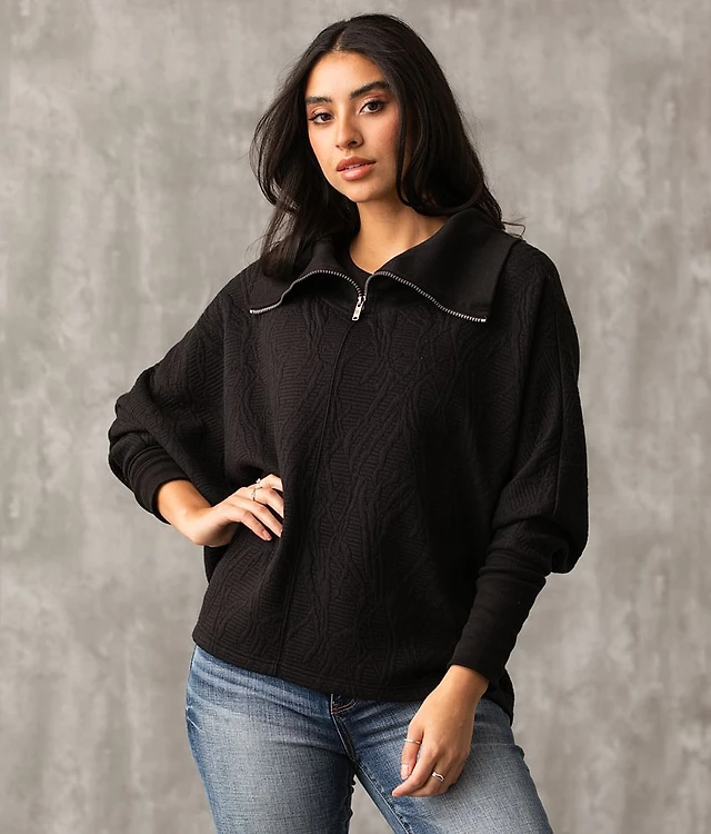 Belldini Black Label Plus Ribbed Mock Neck Half-Zip Sweater