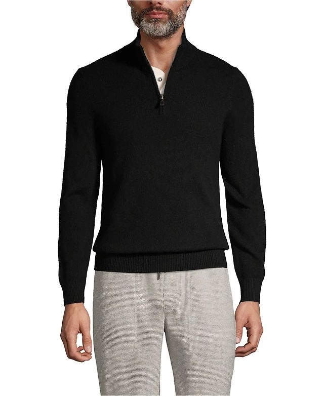 Lands' End Men's Long Sleeve Fine Gauge Cotton Quarter Zip Sweater