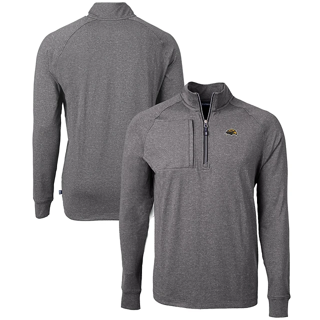 Men's Cutter & Buck Gray/White North Carolina A&T Aggies Big & Tall Virtue Eco Pique Micro Stripe Recycled Quarter-Zip Pullover Top
