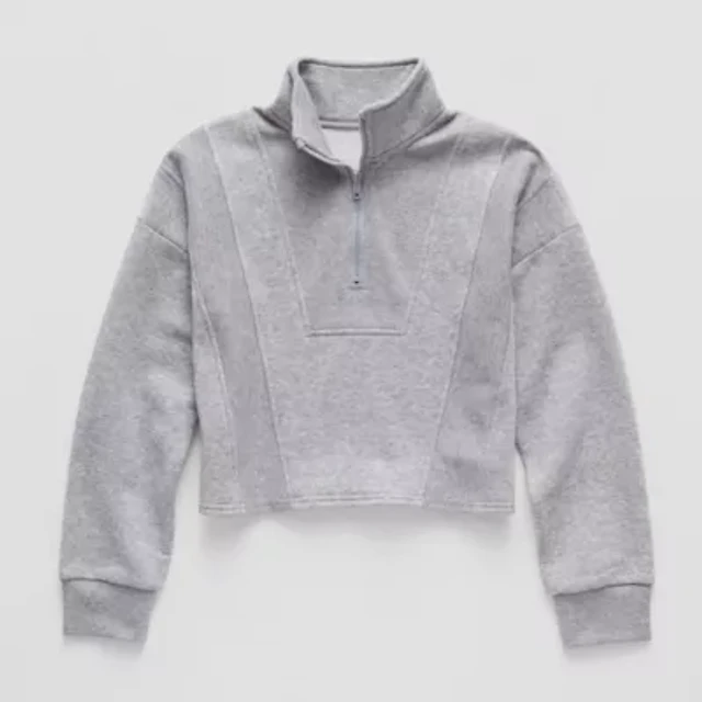 Thereabouts Sherpa Little & Big Kid Boys Easy-on + Easy-off Sensory Friendly Mock Neck Long Sleeve Fleece Adaptive Casual Quarter-Zip Pullover
