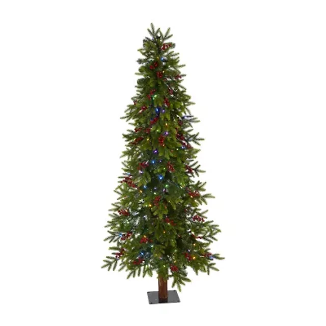 Nearly Natural 6 Foot Fir With Berries And 415 Bendable Branches And 250 Multi-Color (Multifunction) Led Lights Pre-Lit Christmas Tree
