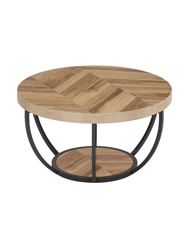 Tribesigns Round End Table with 2-Tier Storage Shelf, Industrial Side Table with Curved Metal Legs