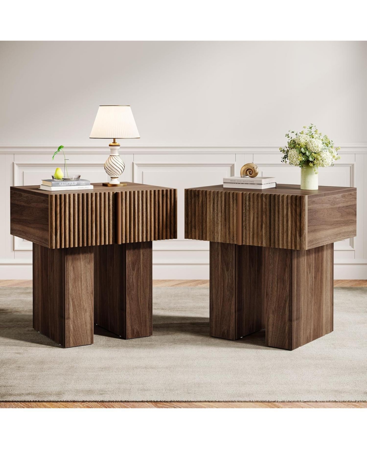 Tribesigns Fluted Nightstand Set of 2, Wooden Night Stand with Storage Drawer, Modern Bedside Table Side End Table