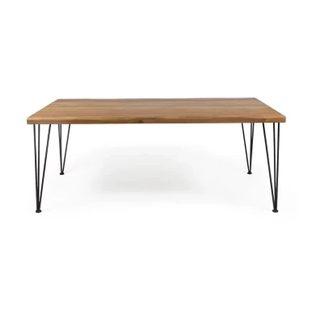 Costway Patio Rectangular Acacia Wood Dining Table with 1.9''Umbrella Hole Indoor&Outdoor