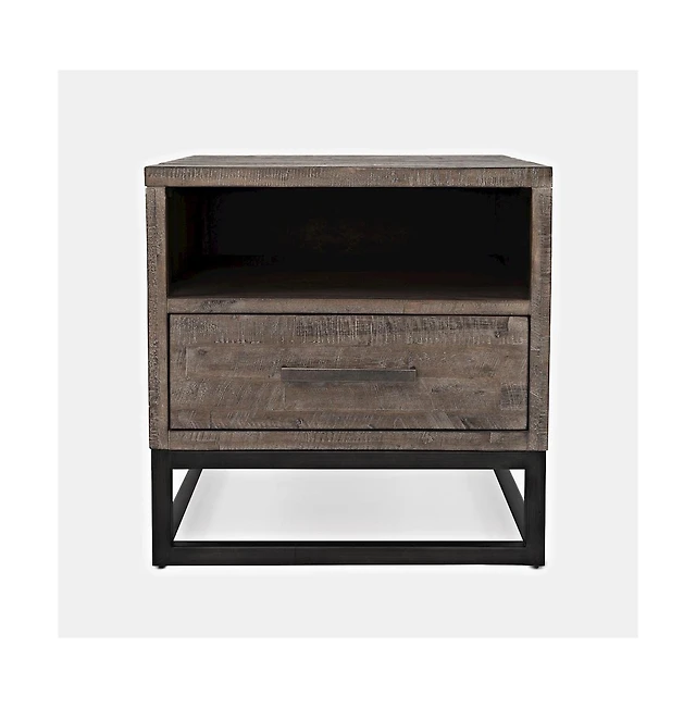 Fairview Transitional Herringbone Distressed Acacia End Table