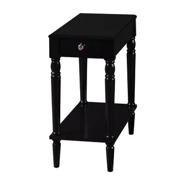 Lovmor Accent Table, 2 Tier, End, Lamp, Living Room, Side Table, Storage Drawer, Small, Dark Bronze Laminate, Black Metal, Contemporary