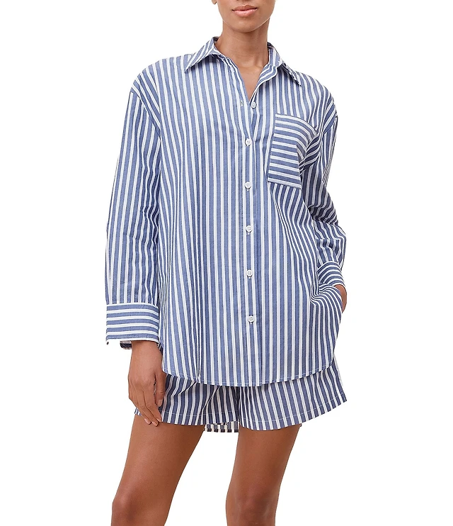 Cotton Striped Oxford Pajama Bottoms