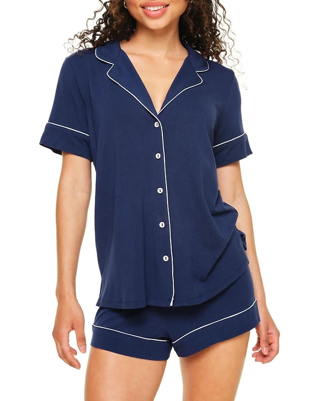 In Bloom by Jonquil Satin Stripe Print Short Sleeve Notch Collar Button-Front Shorty Pajama Set