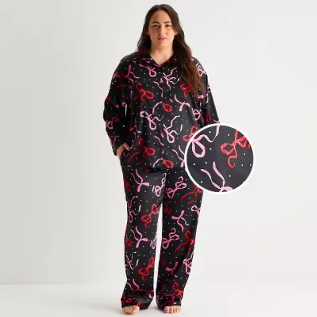 White Mark Womens Long Sleeve 2-pc. Plus Pajama Sets