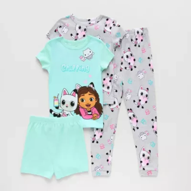 Ame Girls' 4-8 Gabby's Dollhouse Print Tops, Shorts and Pants, 4-Piece Pajama Set