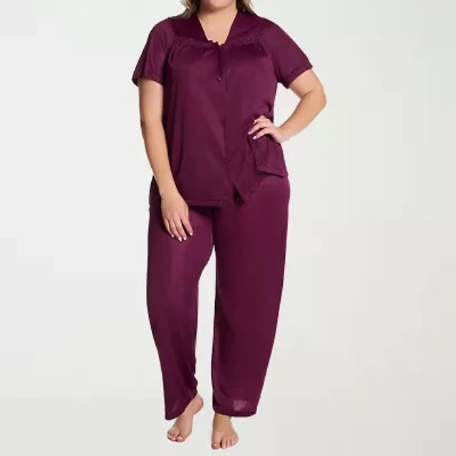 iCollection Women's Isabella Satin 2 Piece Camisole Eyelash Lace Trim Pajama Set