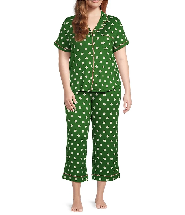 kate spade new york Plus Size Dot Print Short Sleeve Notch Collar Cropped Jersey Knit Pajama Set