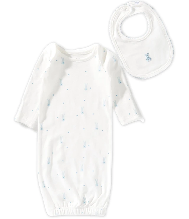 Mud Pie Baby Girls Cotton Dotted Gown & Gingham Print Bow 2-Piece Set