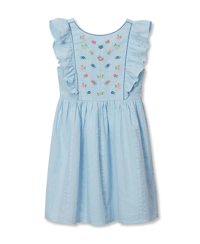 Hope & Henry Little and Big Girls' Short Sleeve Quilted Dress with Eyelet Collar