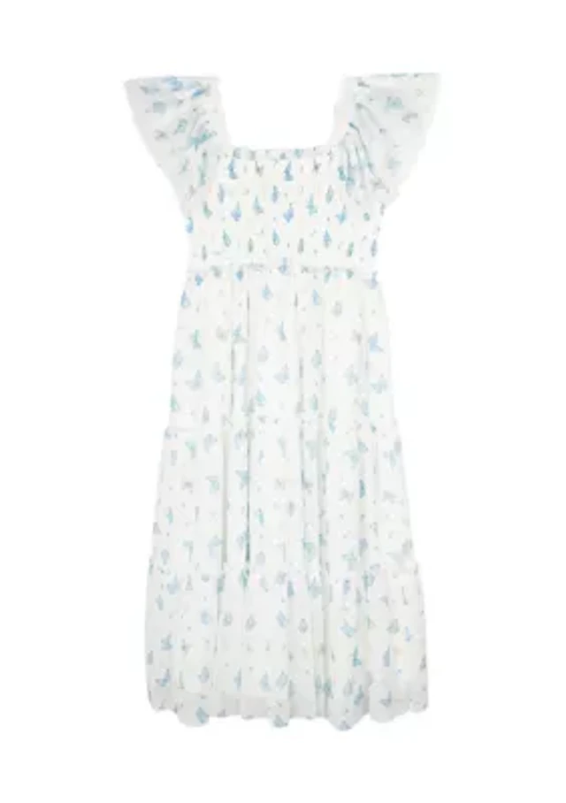 Girls 4-6x Flutter Sleeve Printed Mini Dress
