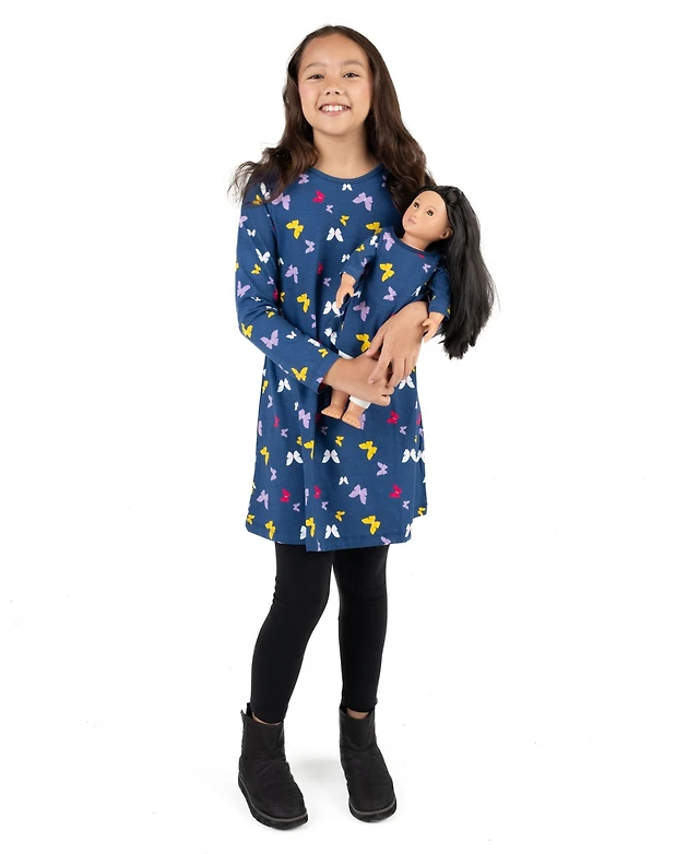 Leveret Toddler Girls Matching Doll Long Sleeve Cotton Crew Neck A-Line Dress