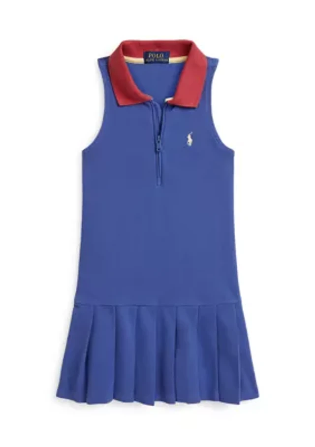 Girls 7-16 Pleated Mesh Quarter-Zip Polo Dress