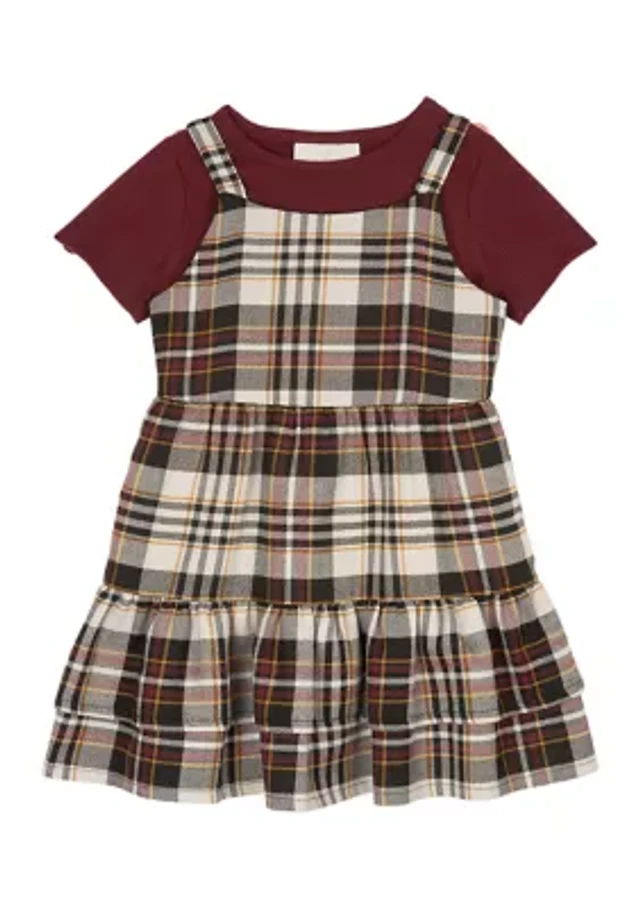 Toddler Girls Plaid Ruffle Jumper with T-Shirt