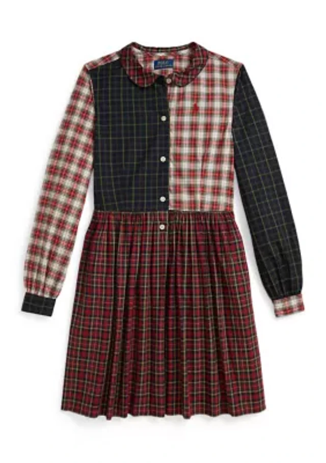 7-15yrs | Plaid Shirred Long-Sleeve Dress