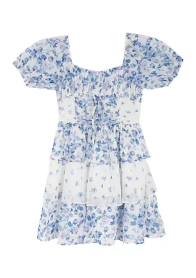 Girls 7-16 Faux Wrap Floral Dress with Ribbon