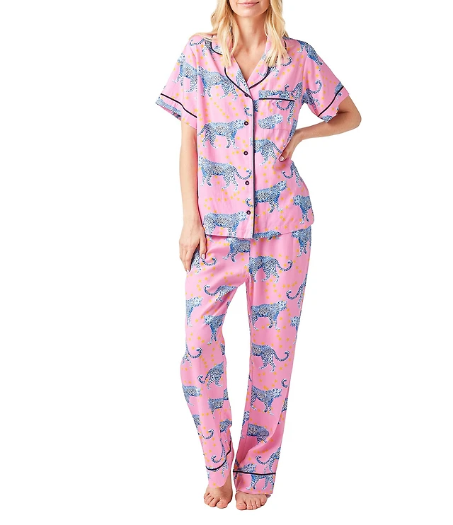 Papinelle Short Sleeve Notch Collar Woven Floral Print Cropped Pajama Set