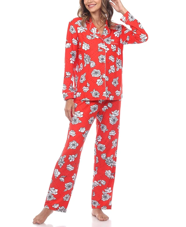 Carole Hochman Floral Print Long Sleeve V-Neck Jersey Knit Cotton Long Pajama Set