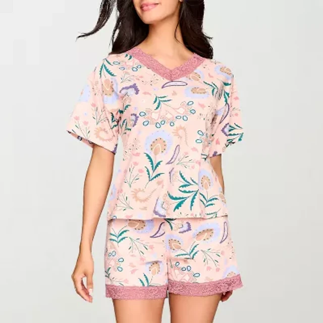 BedHead Eiffel For You Print Organic Cotton Blend Short Sleeve Notch Collar Knit Shorty Pajama Set