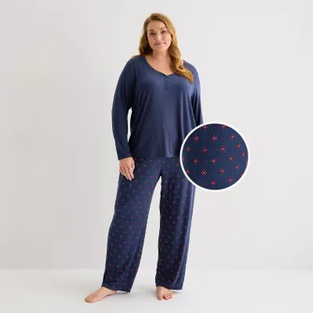 Ocean Pacific Womens Microfleece Crew Neck Long Sleeve 2-pc. Pajama Sets