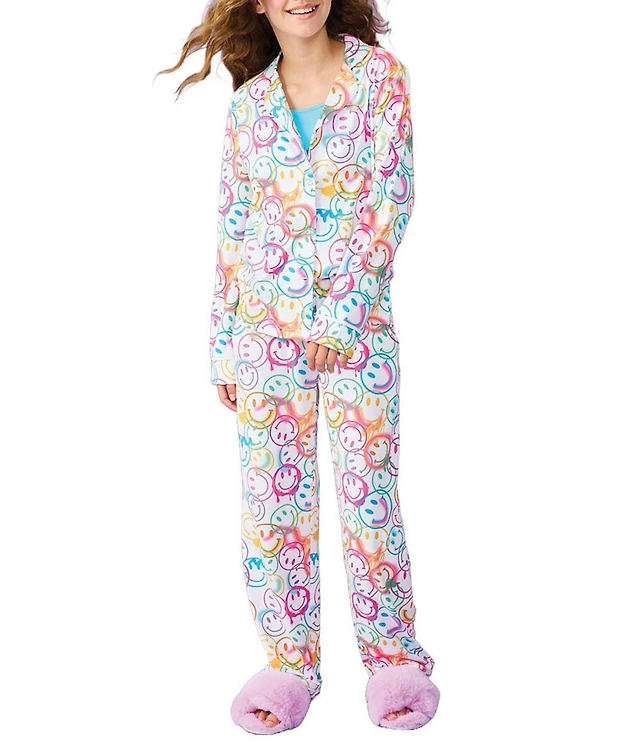 Nottibianche Solid Long Sleeve Notch Collar Button Front Long Knit Pajama Set
