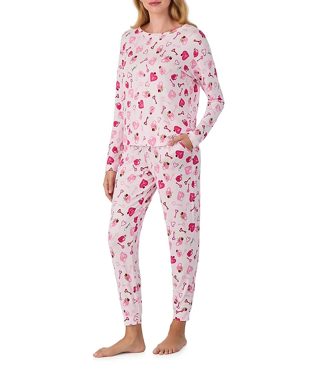 BedHead Travel Toile Print Long Sleeve Notch Collar Knit Long Pajama Set